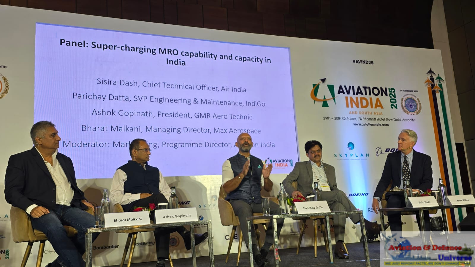 And the question which hung in the air was – Is MRO in India a market waiting to take off? Day2 at Aviation India 2025 started with elan and the panel was on MRO, represented by Bharat Malkani CEO Max Aerospace and Ashok Gopinath President GMR Aero Technic, Parichay Datta SVP- Engineering & Maintenance Indigo and Sisira Dash CTO Air India. The session was moderated by Mark Pilling, Programme Director of the event.
