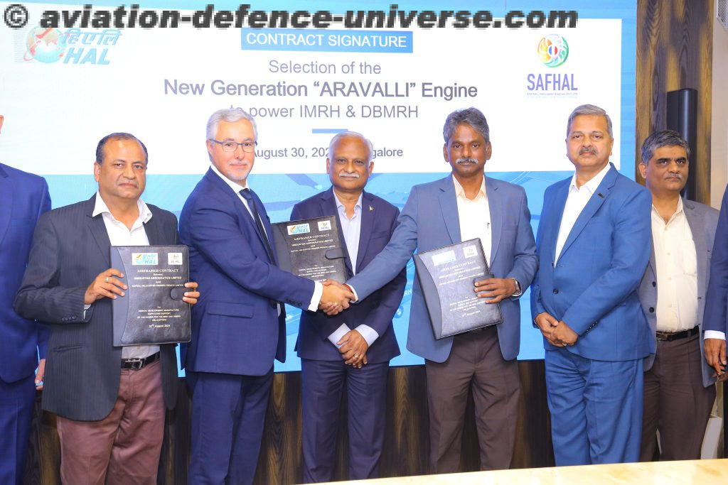 New Delhi, 30 August 2024. Hindustan Aeronautics Limited (HAL) and SAFHAL Helicopter Engines Pvt. Ltd. (SAFHAL) have entered into a partnership to jointly design, develop, manufacture, supply, and support a new high-power engine, named Aravalli, for India’s Indian Multi-Role Helicopter (IMRH) and Deck-Based Multi-Role Helicopter (DBMRH). The Aravalli engine, named after the prominent mountain range in India, represents the country’s goal of achieving self-reliance in critical engine technologies as part of the Aatmanirbhar Bharat initiative.