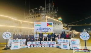 HADR relief material from India was handed over in presence of His Excellency Dr. Ussene Hilario Isse, Health Minister of Republic of Mozambique; His Excellency Robert Shetkintong, High Commissioner of India to Mozambique, and other senior government and military functionaries. A medical camp was also conducted at Mozambique Navy Hospital.