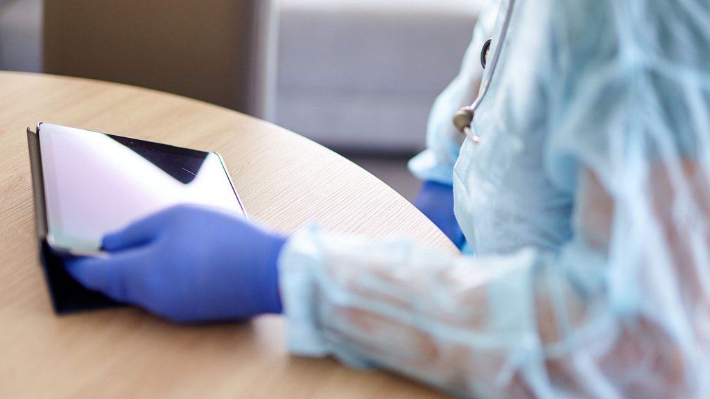 Doctor using tablet computer